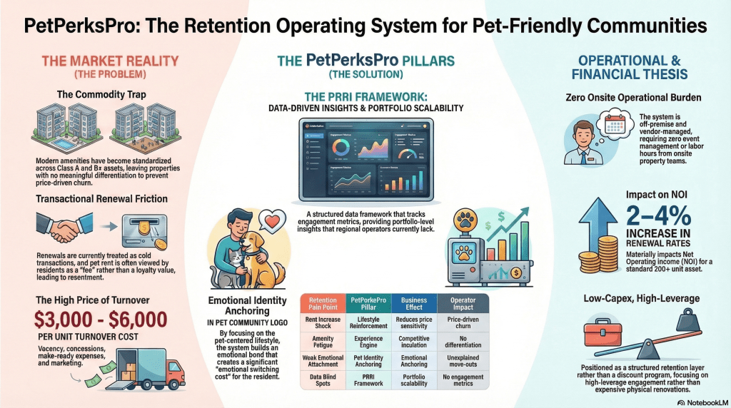 PetPerksPro delivers a standardized retention operating system for pet-friendly multifamily communities designed to strengthen renewals and protect NOI.